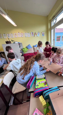 Die Vorschulkinder und die Kinder der 2. Klassen wurden wieder gemeinsam aktiv. Sie pflanzten verschiedenste Gemüsesorten in große Einmachgläser und konnten schon bald die ersten Keimlinge bestaunen. Auch unterstützten sich die Schul- und Kindergartenkinder beim Bau ihrer eigenen Kartoffellabyrinthe. Jetzt heißt es abwarten und beobachten, wann die Keimlinge ihren Weg ins Licht finden.