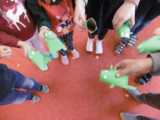 Am 11.11. präsentierten die Vorschulkinder den 1. Klässlern stolz ihr eingeübtes St. Martins Spiel. Anschließend teilten die Kinder gemeinsam Brezeln und sangen Martinslieder.