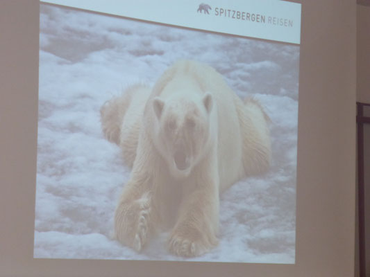 Leben mit Eisbären und Robben präsentierte er uns als seinen Alltag, indem es darum geht im langen Winter mit ewiger Dunkelheit und im kurzen Sommer mit hochsommerlichen Temperaturen von bis zu 10°C auszukommen.